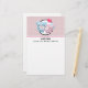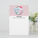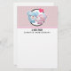 Papelaria personalizada com uma bela imagem de desenho animado de um casal de urso, o urso é cor-de-rosa pastel com um pouco de arco e está beijando a bochecha de um urso azul que parece positivamente encantado. Um pequeno coração rosa está flutuando sobre suas cabeças. Muito fofo e kawaii. Um padrão com cor rosa mutada com bolinhas brancas ao longo da borda superior.