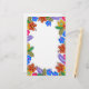 Papel colorido de vazio de borda de jardim de hibisco. Flores laranja, azul, rosa, amarela, verde e roxa e folhas longas rodeiam este papel de 5 x 8 polegadas. O design é impresso em um lado apenas e o papel de linha é mostrado - mas pode ser alterado.