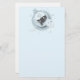 Pastel Blue/cinza gráfico com foguete, lua e estrelas.