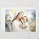 Tentei criar um retrato delicado, intenso e luminoso da Santo Mary, Madonna, e do Jesus Criança, com um fundo natural de plantas e flores. Imagem computacional com efeito de pintura, aquarela, entre a arte tradicional e a moderna.