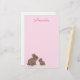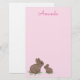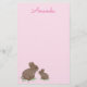 Que belos coelhos pintados realisticamente com narizes cor-de-rosa sentados num pedaço de trevo neste papel de carta cor-de-rosa. Personalize-o com o modelo fornecido com seu nome ou frase.