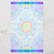 Um teste padrão azul, amarelo e alaranjado do caleidoscópio da mandala do estilo do hippy com estrelas.