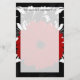 Adicione um toque feminino bonito com esta flor vermelha brilhante bonito da margarida do gerbera, contra um fundo preto e branco do redemoinho do damasco. Acessório elegante bonito e chique com um motivo floral vibrante do vermelho carmesim e umas videiras e uns rolos brancos de roda em um campo do preto. Agradável para mulheres, meninas femininos ou um namorada loving da natureza.