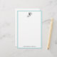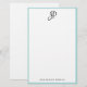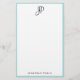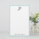 Papel branco personalizado dos artigos de papelaria do verde azul do roteiro da mão modelo simples Monogrammed moderno.