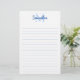 Escolha sua cor de fundo favorita para criar suas próprias folhas de papel monograma personalizadas. Personalize a fonte azul-moderna da caligrafia e o monograma clássico com letra azul-solteiro mais clara com opções diferentes de na moda. Este artigo de papelaria do escritório da casa dela tem um design de dois lados. Presente minimalista.