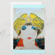 Vibrante, ilustração de alta moda da Deco de Arte Francesa. Retrato de uma bela jovem elegante vestindo um chapéu oriental amarelo com penas em preto branco, amarelo, vermelho azul .design Legal, moderno e artístico.