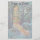Vintage ilustra design religioso de Natal com um elemento arquitetônico, uma paisagem de neve manchada de vitrine. Uma bela capela com luz passando pela nova neve caída do lado de fora na paisagem da estação de inverno.