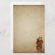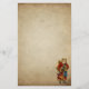 Papel de carta com um velho Pai Natal do Mundo Vintage. Papais noeis clássicos do velho mundo, vestindo seu famoso casaco vermelho e carregando um cheio de brinquedos. Estes Papais noeis antiquados, são magros e têm uma bengala para viajar pela terra dando brinquedos a todas as raparigas e rapazes. Fundo antigo do estilo de pergaminho.