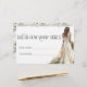 Na moda elegante design com noiva de aquarela em seu vestido de noiva, tipografia moderna e flores em maríblia de trás.O texto pode ser facilmente personalizado para um único design único para seu dia especial.