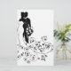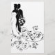 Uma noiva e um casal de noiva na silhueta, a noiva em um vestido branco de noiva segurando um buquê floral de flores com um design de padrão floral abstrato