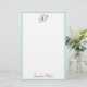 Papel branco personalizado dos artigos de papelaria do verde azul do monograma do modelo nome escrito à mão simples moderno.