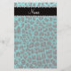 Nome personalizado personalizado moderno, chic e moderno brilhante padrão de manchas-leopardo aqua brilhando (impressão animal) com uma bela faixa de diamantes negros (não diamantes reais) com corações e pontos personalizados com seus presentes de nome, presentes de monograma ou suas iniciais. Bonito ideias de presentes impressas em leopardo.
