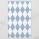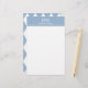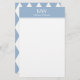 Um grande monograma branco está no topo. Uma linha de texto de exibição branca está sob o monograma para o nome ou uma mensagem personalizada. Todo o texto pode ser editado ou excluído. Esta papelaria pessoal tem um cabeçalho azul bebê. Um padrão geométrico está no verso da folha.