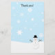 Papel de carta especialmente feito para o obrigado escrevendo você escreve para todos os seus amáveis amigos e família que te deram presentes este ano. Esse conjunto com um fundo leve de neve coberto de flocos de neve e uma ilustração digital simples de um boneco de neve, com nariz de cenoura, carvão para os olhos e boca e vestindo um chapéu atraente.