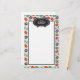 Papel de papelaria com um padrão fofo de macarões em muitas cores diferentes com um padrão de bolinhas fraco atrás. Um retângulo branco em camadas acima para escrever dentro. No topo está um quadro decorativo preto e branco, com aspecto de rico, com aspecto de vintage, com o seu dentro de texto personalizado.