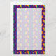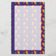 Este trabalho de arte apresenta corações coloridos do arco-íris num fundo roxo escuro.