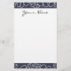Papelaria Padrão Floral de Ikat Whimsical Azul Marinho Monog