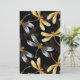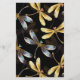 Padrão sem costura com ouro, joias, libélulas brilhantes com asas brilhantes e detalhadas sobre fundo preto. Dourada libélula.