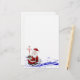 Papai Noel e seu trenó no Polo Norte com bonito neve azul florescem no fundo desta papelaria de Natal.