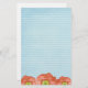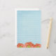 Papel de papelaria macio e bonito, decorado com flores de papoila laranja vermelhas pintadas em aquarela sobre fundo azul macio.