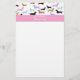 Esta divertida papelaria de escrevendo apresenta pequenos cachorros coloridos no topo. Um gráfico de uma faixa cor-de-rosa é executado na parte superior, esperando seu texto personalizado.