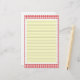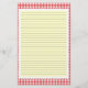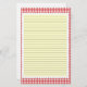 Papel de carta de Gingham vermelho e branco com linhas opcionais. Use o botão personalizar para alterar a cor de fundo atrás das linhas. Exclua as linhas da opção sem linhas.