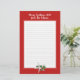 Papel de carta de Natal alinhado com texto no topo e um design de peixe-estrela tropical. Cores tradicionais vermelho e verde com bloco central de branco com linhas. O texto branco no topo pode conter o nome da família e o ano, ou outro texto. Uma estrela branca do mar com holly verde decora o fundo. O reverso é verde-escuro sólido. Escreva essa carta anual à família e aos amigos e inclua em um de nossos cartões de saudação personalizados.