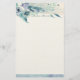 Esta adorável página é encabeçada com uma haste de uma rosa azul de aquarela misturada com folhagem violeta clara, folhas de chalé e menta. A parte inferior é terminada com uma borda de lavagem colorida mesclada. Todas impressas sobre uma imagem de papel creme que está vazio na parte traseira.