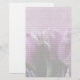 Esta design apresenta um monte de tulipas roxas com uma libélula aqua nas folhas, sobre um fundo gráfico transparente e multitexturizado. Use o botão personalizar para mudar sutilmente a cor de fundo atrás das flores. As linhas são opcionais - basta limpá-las para o papel não revestido.