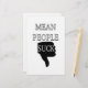 Tipografia branca e preta. Uma mão humana com o polegar para baixo. Texto: Pessoas Médias Suck.