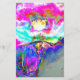 Pintura floral abstrata rosa elegante em tons de azul turquesa