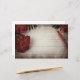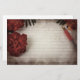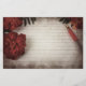 Papel de carta com uma fotografia floral de outono. Papel de carta revestido desbotado e uma caneta sentada em cima com algumas bonito flores vermelhas e folhas verdes colocadas ao redor das bordas.