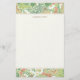 Papelaria pessoal muito atraente, enquadrada por ervas selvagens artísticas - amarilis, chamomila, frutas cruas, algumas borboletas e sua opção de personalizar. O corpo do papel é um impressão de pergaminho falso, aparado entre o topo e o fundo, com uma margem de prata.