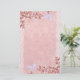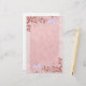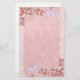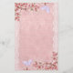 A papelaria apresenta flores cor-de-rosa macio com borboletas mauve em delicado fundo rosa cor-de-rosa. Ligeiramente alinhado.