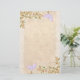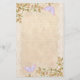 A papelaria apresenta flores de pêssego macio com borboletas mauve no delicado fundo de pêssego revestido de rendas.