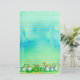 Papel de papelaria forrado para a estação do outono, com abóboras-fantasma brancas e peras desenhadas com tinta e pintadas com aquarela num fundo azul, verde e amarelo de lavagem com aquarela.