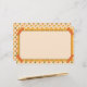 Bright orange striped faux washi tape adorns the corners of this colorful multi pattern design with hand drawn yellow floral grid and striped patterns in orange, yellow, cream and green, bordering a spacious cream writing paper.