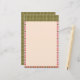 A colorful, hand drawn tablet styled stationery paper featuring a mix of playful retro pink and green patterns bordering a spacious cream writing space.