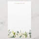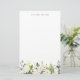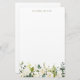 Papel de papelaria floral branco com ilustração aquosa de flores brancas e de híbridos brancos com acento verde. Esta papelaria botânica será perfeita como um presente personalizado. Personalize adicionando um nome ou uma frase curta.