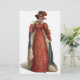Regência à moda - placa de forma da era. Senhora inglesa no vermelho com chapéu.