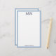 Um grande monograma azul de meia-noite está no topo. Uma linha de texto de exibição azul da meia-noite está na parte inferior para seu nome ou uma mensagem personalizada. Todo o texto pode ser editado ou excluído. Esta papelaria pessoal tem uma borda azul bebê.