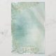 Fronteira decorativa teal do lado esquerdo com borda retangular mais escura. Linhas brancas e modelo de ouro para o nome do monograma no fundo.
