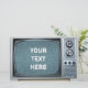Fotografia de um televisor dos anos 80 com estática na tela e texto personalizável. Cor de fundo personalizável.