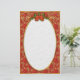 Papelaria Elegante vermelha de Poinsettia com cabeçalho de rolagem de ouro e folhas verdes ocas com arco vermelho.