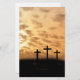 Três cruzes contra um por do sol, papel de carta bonito da páscoa podem ser personalizadas com a ferramenta fácil do texto de Zazzle. Excelente para o serviço ou o convite da páscoa do nascer do sol da igreja. Design original por Angela Castillo e por Cherie Haines.