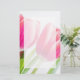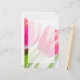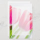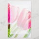 Papel de carta com uma bela fotografia de primavera com 2 tulipas cor-de-rosa e folhas verdes brilhantes.