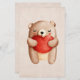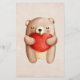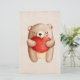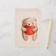 Papel de papelaria com uma ilustração de aquarela fofa. Um ursinho castanho carregando um grande coração vermelho. Fundo de cor-de-rosa esmaecido com uma textura de papel de estilo vintage.