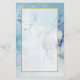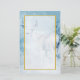 Papel de carta com a imagem de um veado majestoso no inverno. Um fundo azul gelado filtrado dá a esta foto um olhar frio de inverno com um toque mágico. Este animal orgulhoso e nobre fica em uma colina com pinheiros do inverno a distância. Uma camada semitransparente com borda dourada é colocada sobre cima para um escrevendo facilmente legível.