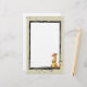Papel de papelaria com um meerkat de aquarela giro em pé, em alerta. O fundo é cor bege creme com pontos aleatórios pretos e contornos. Um retângulo desenhado à mão no centro para dentro de escrevendo.