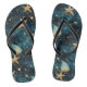 Um par de chinelos com um elegante padrão azul com estrelas do mar, representando o oceano.